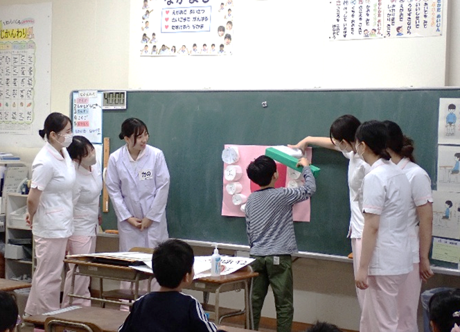 今回の臨地実習では、学生たち自身が教材を制作し、児童の発達段階に合わせて伝え方を工夫しました。劇やクイズ、模型を使った歯みがき指導など、児童の興味をひく楽しい授業を作り上げました。